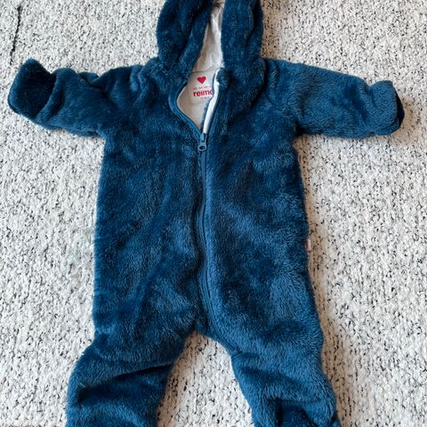Myydään tummansininen Reiman pörröhaalari, koko 62/68. Hihat ja lahkeet saa taitettua umpinaisiksi.