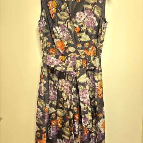Kaunis ja romanttinen Laura Ashley mekko. Kaunis ruusukuosi ja upea istuvuus. Puuvillatrikoo eli joustaa. Kaunis vyötärölinja, josta helma lähtee levenemään kauniisti. Koko 38. Kai-kai 49cm, olka-helma 123cm. Takana ja hartioilla auringon haalistumaa, näyttää pahemmalta kuvassa kuin on luonnossa.