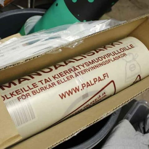 Tämä pussi on Suomen pullonpalautus Oy:n virallisesti hyväksymä malli.