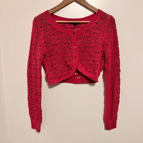 Icon kaunis ja romanttinen neulebolero. Kaunis pitsineulos, pitkät hihat, jotka levenevät vähän hihansuissa ja kiva väri. Koko 4. Kai-kai 60cm, olka-helma 42cm. Siisti kunto.
