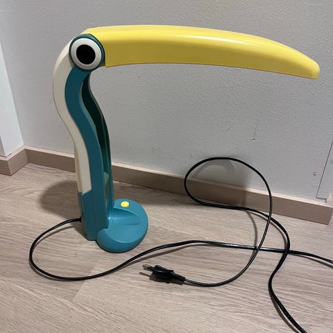 Hakusanat: Toucan, H.T. Huang, retro valaisin, 80-luvun design, postmodern, vintage pöytälamppu