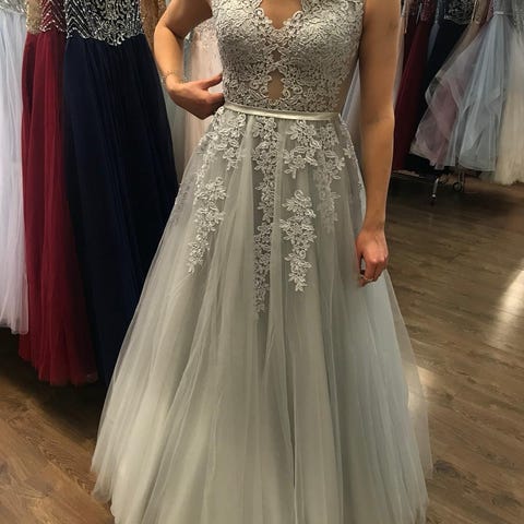 Kerran vanhoissa käytetty tummanharmaa glittermekko. Ostettu vuonna 2025 Iltapukuoutletista. Mekko on ompelijalla lyhennetty noin 165 cm tytölle sopivaksi (tanssi tennareilla). Mekon mukaan tulee sen alla käytetty tyllihame