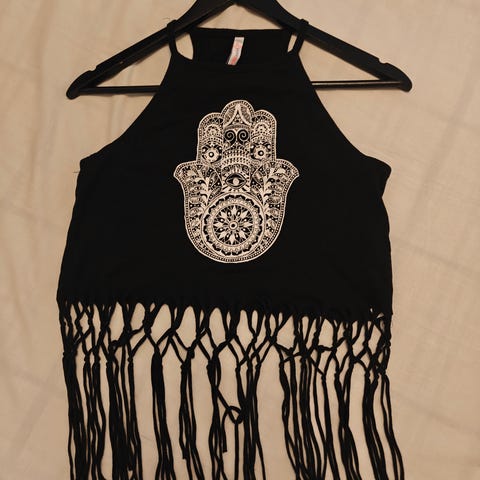 Luonnonvalkoinen toppi jonka helmassa hapsuja!!