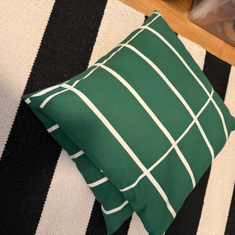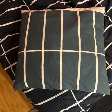 Ostan Marimekon Tiiliskivi okra-musta tyynyliinan