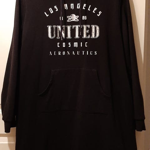 Musta väljämallinen mekko, sivuilla taskut