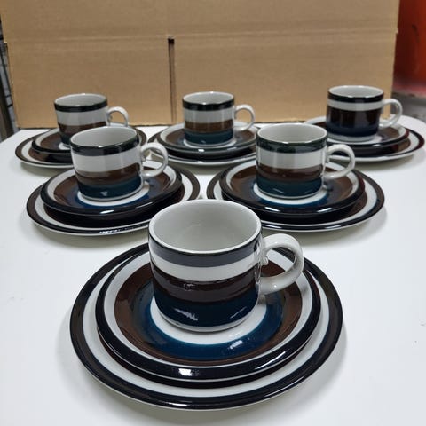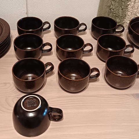 Hyväkuntoinen astiasto kasarilta vaikkapa möksälle.