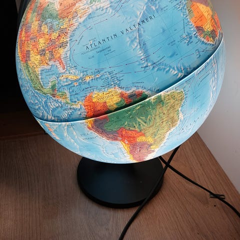 Käytetty mutta toimiva maapallo kodin sisustukseen, opetteluun tai vaikka tunnelmavaloksi.