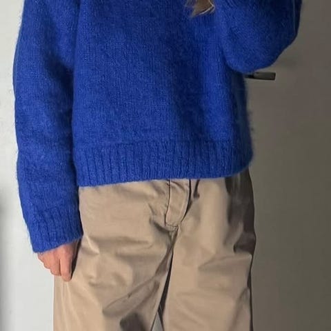COS mohairneule, koko S. Laadukas villa-mohairsekoite, ei nukkaa. Väri voinkeltainen. Reilu mitoitus