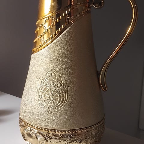 Iso kannu, ruusu kuvalla.