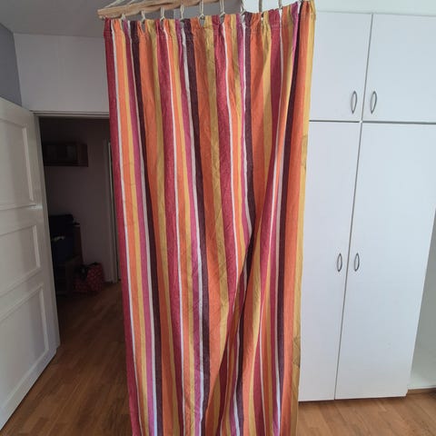 Kankainen riippumatto. Riippumatto on melko isokokoinen ja paksua kangasta. Kuvissa on kuvattuna myös riippumaton päädyt, joissa on lenkit, joista voi kiinnittää riippumaton koukkuihin. Mukana tulee 4 kpl koukkuja, vaikka 2 koukkua tuohon tarvitaan.