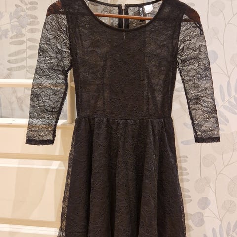 Myydään musta pitsimekko, jonka koko on 34/S.