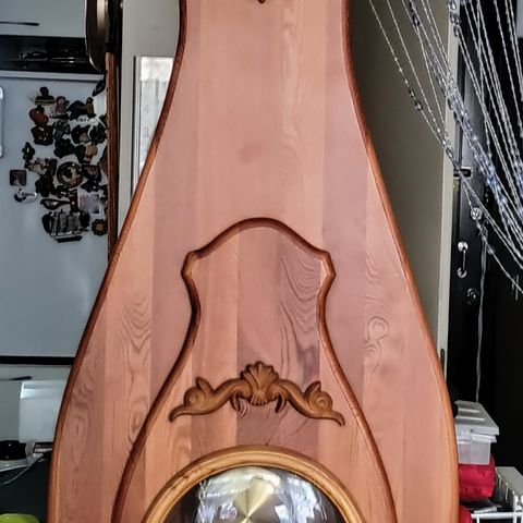 Mekaaninen kaappikello, tarvitsee puhdistuksen. Ei ole ollut vuosiin käytössä. Soittaa joka puoli tunti sekä tasatunnein. Perheellä ollut tämä Kello vuodesta 1983. Korkeus 178cm. Siro kello sopii hyvin nykyaikaiseen sisustukseen. Vain nouto.