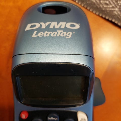 DYMO 1000 -tarratulostin 90-luvulta. Toimii vain virtapiuhalla (ei mukana, mutta monenlaiset yleismuuntajat sopivat tähän), mutta silloinkin tulostaa hieman vaillinaisesti – katso kuvat.