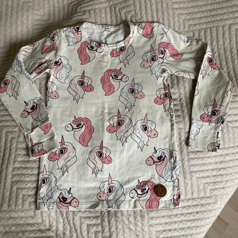 Blaa trikoopaita, lohikäärmekuosi, koko 134/140.