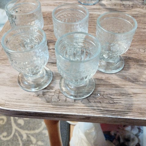 7 kpl vanhoja jalallisia snapsilaseja. Ihanaa ohutta lasia. Kaikki ovat ehjiä.