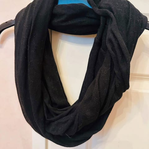 Harmaa musta tuunihuivi ja mustat vanttuut pinkillä sydämmellä 🩷