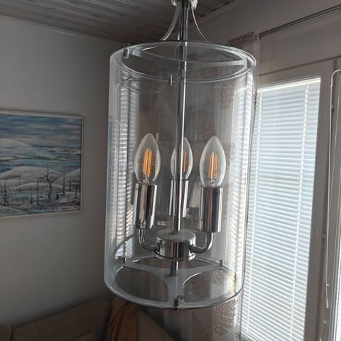 Myydään vanerinen riippuvalaisin. Sisäpuolella vaalea kangas. Halkaisija 45cm, korkeus 25cm, sähköjohdon pituus n. 100cm. Sähköjohdossa pistoketulppa. Valaisimessa himmennettävä led-lamppu. Nouto ok myös Ilmalasta tai Viinikkalasta tai Keski-Uudenmaan alueella omien menojen mukaan.
