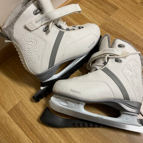Reebok luistimet, koko 42, sinivalkoinen väri. Soveltuvat muun luistelun harrastamiseen.
