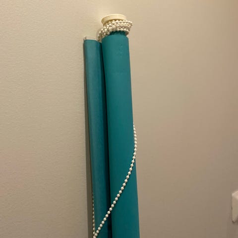 Kaksi isompaa täysin valkoista rullaverhoa koot 140x190 ja 120x190, pienin 69x190. Pienimmässä kuvio ala reunassa muuten valkea.