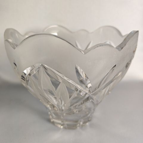 Riihimäen Lasi kristallilautanen, valmistettu vihreästä lasista. Lautasessa on koristeellinen reunus ja pyöreä muoto. Sopii tarjoiluun tai koristekäyttöön.