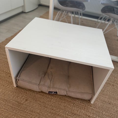 Myydään koiran muovinen peti. Käytönjälkiä, tahroja. Tuuletus reiät. Pituus n. 55 cm.
