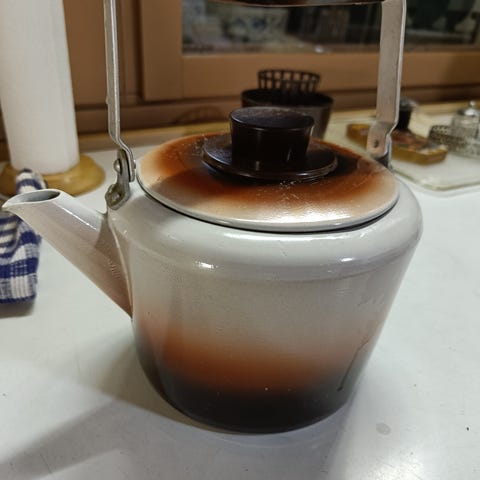 Vanha suomalainen teräksinen pannu, jonka tilavuus on 1,5 l. Korkeus kannen kanssa on noin 16 cm. Ajanpatinaa nähtävissä. Kahvassa lukee, el-rod talousteräkset 1½L 1968 sekä merkki, jossa lukee laatukilpailu kultamitali.