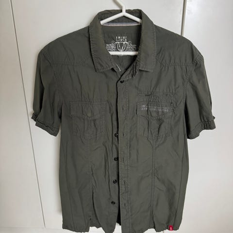 Vihreä miesten paita, koko L. Paidassa on pitkät hihat ja napit edessä. Materiaalitietoa ei ole saatavilla. Sopii arkikäyttöön.