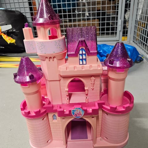 Lasten leikkeihin mukava prinsessalinna. Alustan koko 52x68 cm. Linnan maksimi korkeus n 74cm.
