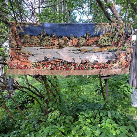 Vanha gobeliini, jonka aiheena on ketunmetsästys. Metsästäjiä ratsailla, ajokoiria, kauniit maisemat. Koko 129 x 172. Ehjä ja siisti. Postitus tai nouto.