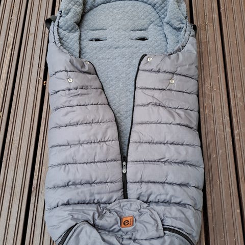 Todella vähälle käytölle jäänyt lämpöpussi vaunuihin/rattaisiin. Tumman ruskea karvavuori, päällyskangas tumman sininen, ohutta "tuulipuku" kangasta.