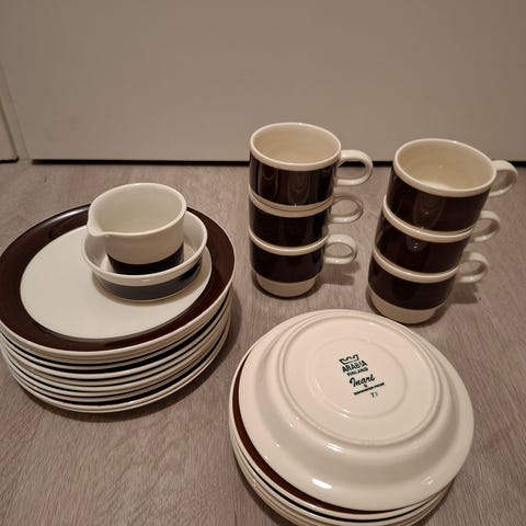 Myydään kuvan mukainen Arabian Rosita-sarja. 8 hengen + kermakko, sokerikko ja kannu. Piippuleima. Optiona lisänä ylimääräiset 6 kpl kakkulautasia ja 2 kpl kupin asetteja.