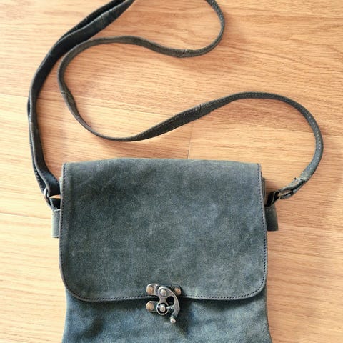 Hobo olkalaukku tehty mokkanahasta. Laukun saa kiinni rusetilla