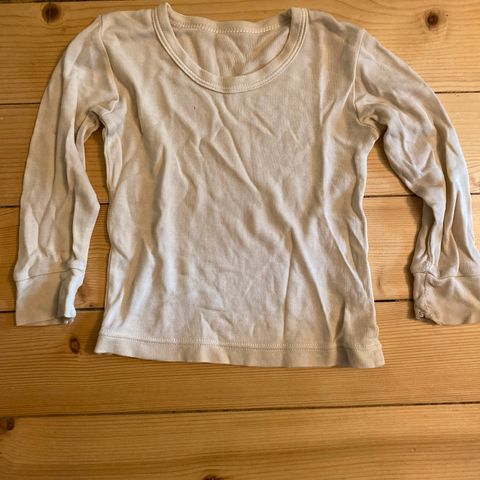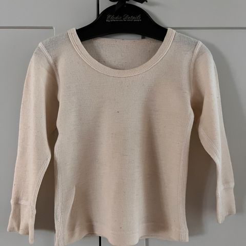 Käytönjälkeä näkyy; muutama reikä paikattu siististi, hieman tummentumaa herkässä värissä. Edelleen käyttökelpoinen aluskerroksena. Viat eivät vaikuta käyttöön.