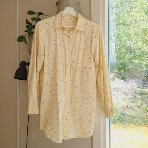 Myydään tyylikäs naisten kukkapaita. Paidassa on 2 avointa rintataskua edessä.