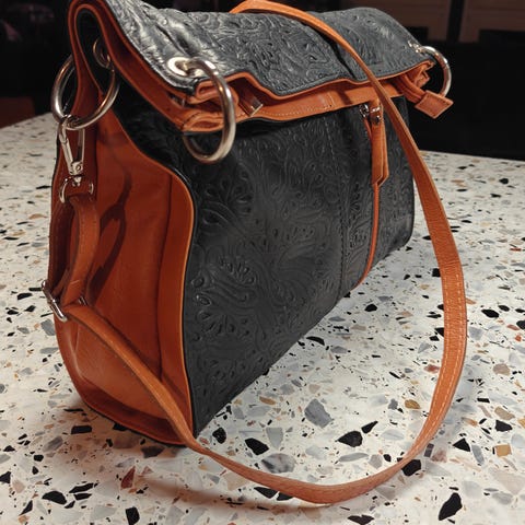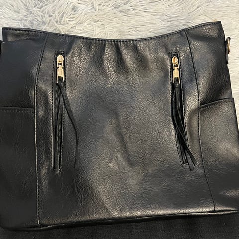 Italiassa tehty, upea musta nahkalaukku. Koko n. 37 x 30 x 8cm. Metalliset niitit lyhyessä hihnassa, irrotettava. Niitit ympäri laukun, hienot. Sisällä vetoketjutasku ja yksi avotasku. Kunto kuin uusi. Voin lähettääkin postikuluja vastaan.