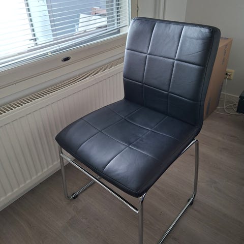 Myyn kauniin ja tyylikkään mustan metallituolin. Olen itse päällystänyt, joten ei ole ihan ammattimaisesti tehty. Helppo päällystää uudelleen jos ei kankaasta tykkää. Hieman maali kulunut selkänojan kulmasta, katso viiminen kuva.