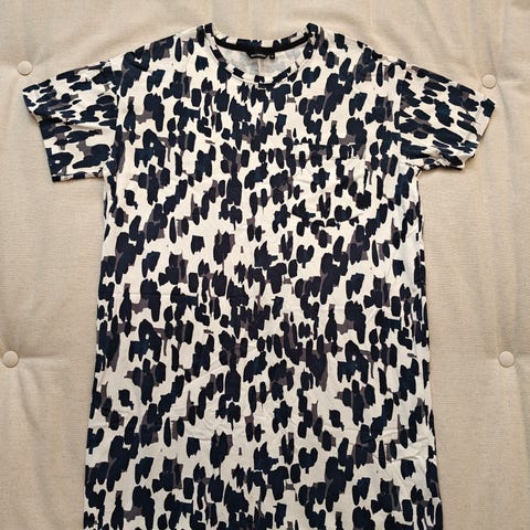 Puolihihainen villa-puuvilla mekko Marimekko-merkkiä. Väriltään sinertävä/harmaa. Pieniä kulumisen jälkiä nähtävillä kts. kuvat