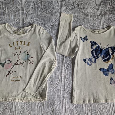 Tyttöjen paitoja (perhonen, kisu, pupuballerina) 120 ja 122