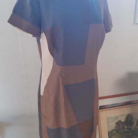 Pikähihainen Oliver-mekko. Koko 42. Sopiva myös koolle 40. Värinä musta ja kultaan menevä beige, printti pitsimäinen. Materiaali mielyttävän pehmoinen iholla.
