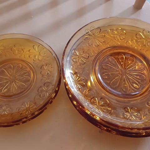 Lasiset vintage kakku/pulla-asetit. 6 kpl. Ehjät.