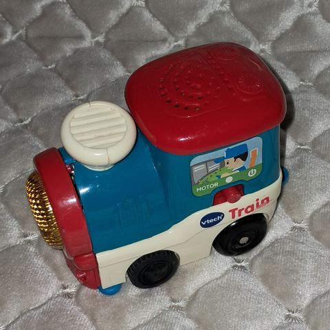 Pikkujuna kulkee vapaasti radalla. Tämä on kaunis ja turvallinen lelu, ja se on vielä erittäin hyvässä kunnossa.