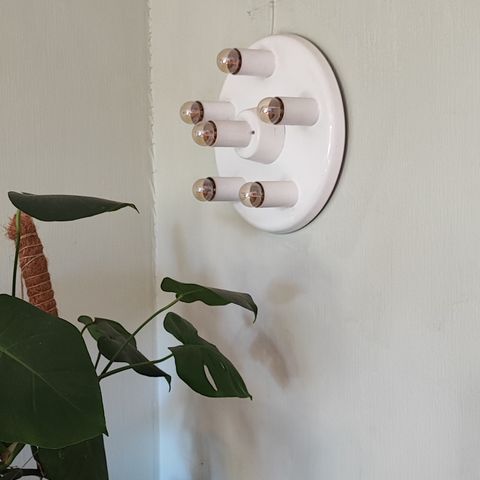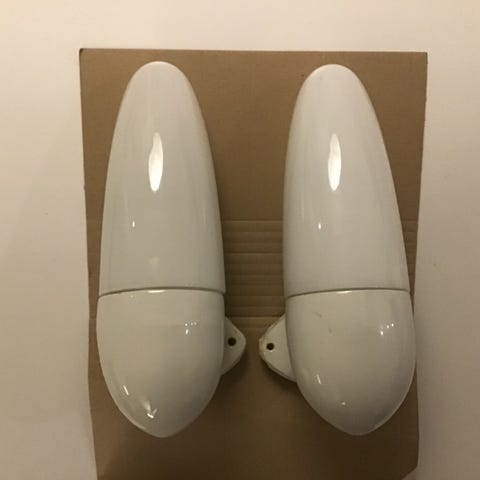 Kauniit metalliset seinävalaisimet 1970-luvulta. Valaisimia 2 kpl. Syvyys 29 cm, korkeus 24 cm. Lamput ostettu Bukowskin huutokaupasta.