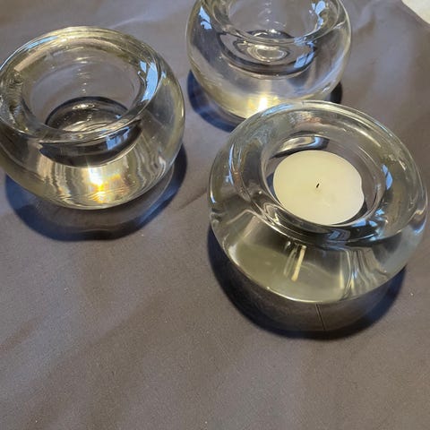 Kaksi ehjää ja siistiä tuikkukynttelikköä Korkeus 7cm, olleet vähäisellä käytöllä.