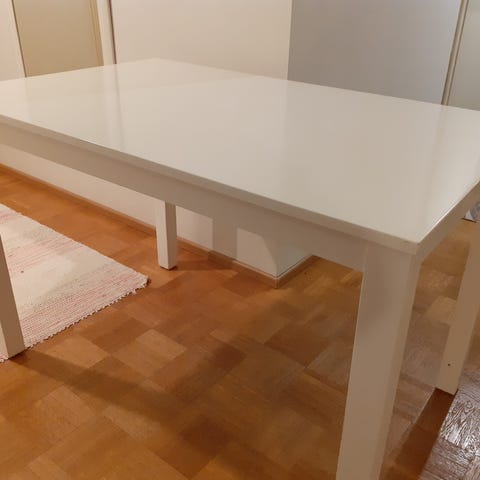 Minimalistinen design sopii monenlaiseen sisustukseen. Pöydän ääreen mahtuu hyvin 4–6 henkeä.