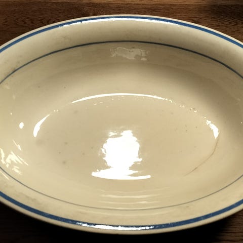 Arabia sininen ruusu kulho / astia. Greta-Lisa Jäderholm-Snellman. Halkaisija 25 cm, noin 6-7 cm korkea. Ehjä. Kultareuna.