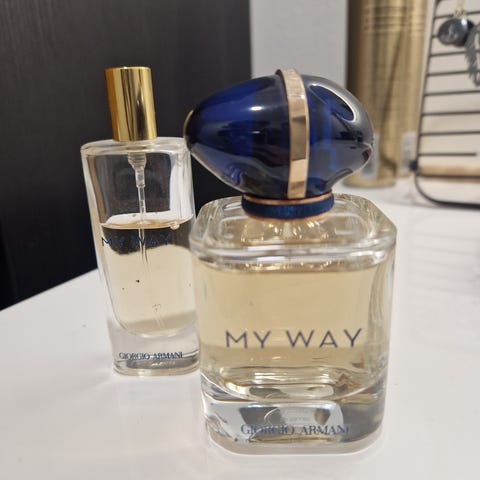 Avattu hajuvesi. Vikassa kuvassa näkyy hajuveden määrä. 131e maksaa uusi pullo Sokoksella.