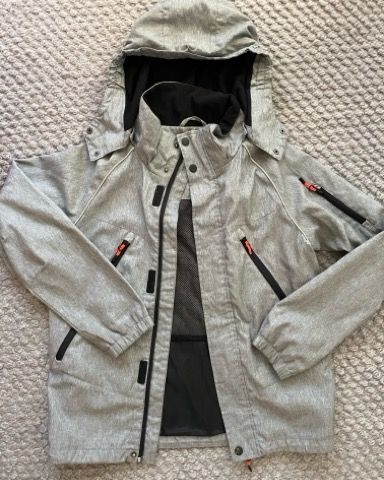 H&M ulkoilutakki kokoa 152cm. Muuten käytetty hyvä kunto, mutta takana helmassa pieni vekki. Ei kiinnitä huomiota käytössä. Vettä hyvin hylkivä. Ei kotieläimiä.