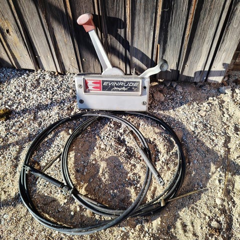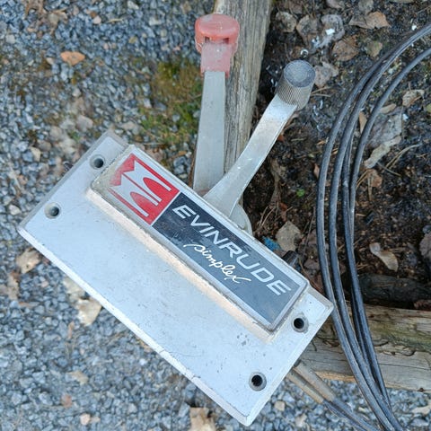 Evinrude 40hv 2-tahti moottorin kaukoohjauslaitteet löytyy startti ja trimmivarusteet.lähetys onnistuu.