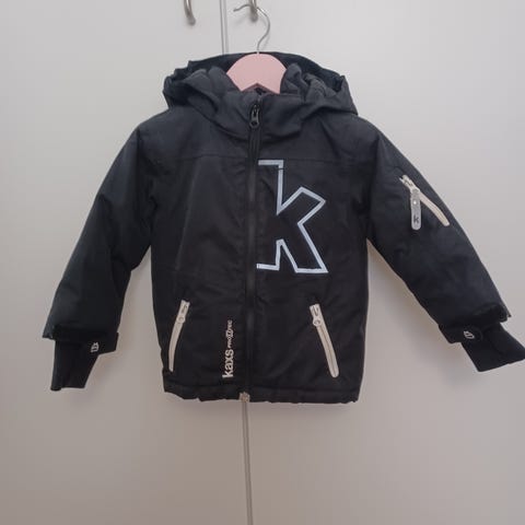 KappAhlin Kaxs-merkkinen toppatakki, koko 86. Tummanvihreä/musta. Takissa irroitettava huppu, irroitettava karvareunus hupussa ja taskut sekä lumilukko ja heijastimia. Käytetty vain muutamia kertoja ja pesty kerran myyntiä varten.