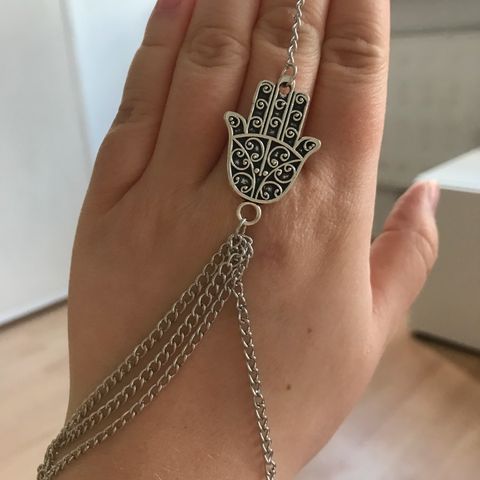 Ihana ohut Fatiman käsi/pahan silmä sterling hopea ranneketju.